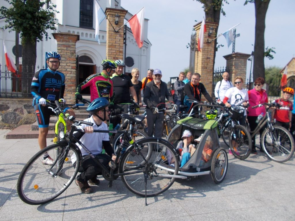 W tym roku w drugą sobotę września, a nie jak zwykle w pierwszą odbyła się Piesza Pielgrzymka Rodzin do Matki Bożej Pocieszenia w Krypnie. Już po raz trzeci wybraliśmy się – w dniu tej pielgrzymki do Krypna rowerami. W tym roku było nas więcej, bo niezależnie od naszego zamierzenia skrzyknęli się w tym samym celu i terminie uczestnicy Rowerymki, czyli rowerowej pielgrzymki na Jasna Górę. Trochę wiec na początku dziwiliśmy skąd jest nas tak dużo w miejscu zbiórki przy Auchan na Produkcyjnej, ale później jak już wszystko się wyjaśniło, było nam tylko raźniej a byli i tacy, którzy przyznawali się do obu grup naraz, i KIK owskiej i Rowerymkowej. KIK wyruszył tradycyjnie spod kościoła Św. Wojciecha, po modlitwie i błogosławieństwie i do Auchan jechaliśmy dwoma trasami, część przez centrum a pozostali przez obwodówką aby pozbierać na trasie innych naszych uczestników. Pieszą pielgrzymkę przegoniliśmy już w Dobrzyniewie Kościelnym. O godz 12 mieliśmy Mszę Św. w sanktuarium w Krypnie i po pamiątkowych zdjęciach rozdzieliliśmy się. Rowerymka? wróciła tą sama trasą bo buli zaproszeni przez Elę na ciasto i wspomnienia w Dobrzyniewie, a grupa KIK?owska wracała przez Tykocin, gdzie proboszcz tykociński dał nam niesamowicie bogatą lekcję historii tego miasta i rejonu. Poznajecie się na zdjęciach? Kasia z Krzysztofem, Danusia, Teresa, Artur, Ks. Adam, Tadeusz, Leszek, Roman, Tadeusz, Janusz z dziećmi: Adasiem, Krzysiem, Izą i Karolem, Antoni, Ala, Ela, Jarek, Jurek, Basia, Adam, Ewa, Tomek, Sławek, Łukasz, Robert. Czyli było nas 27 osób.